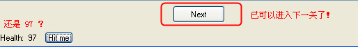看一下 Tutorial ,next 按钮已经激活,但好象数值还是 97,呵呵,勾选上"锁定",再点一下 "Hit me" ?是不是搞定了?!